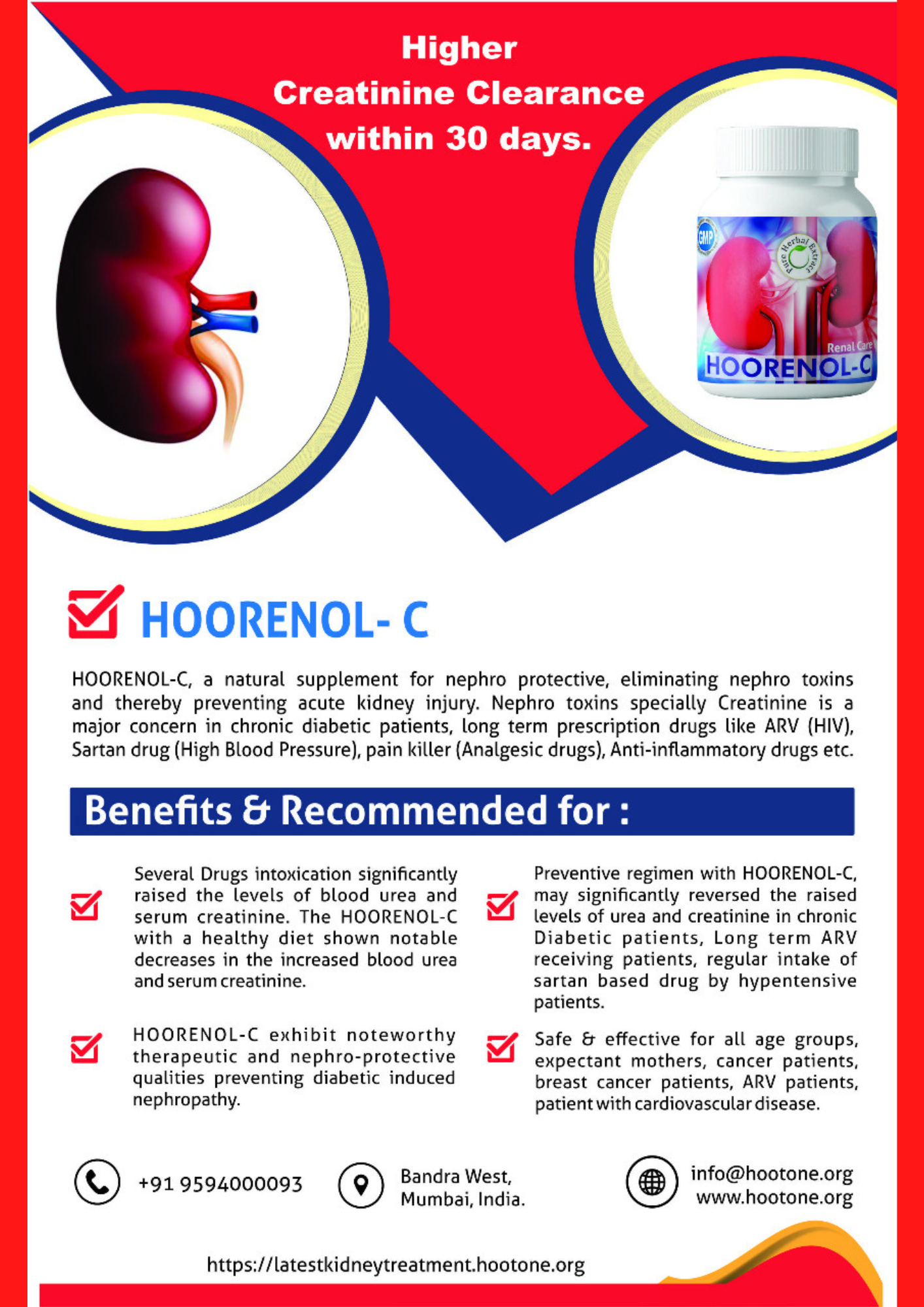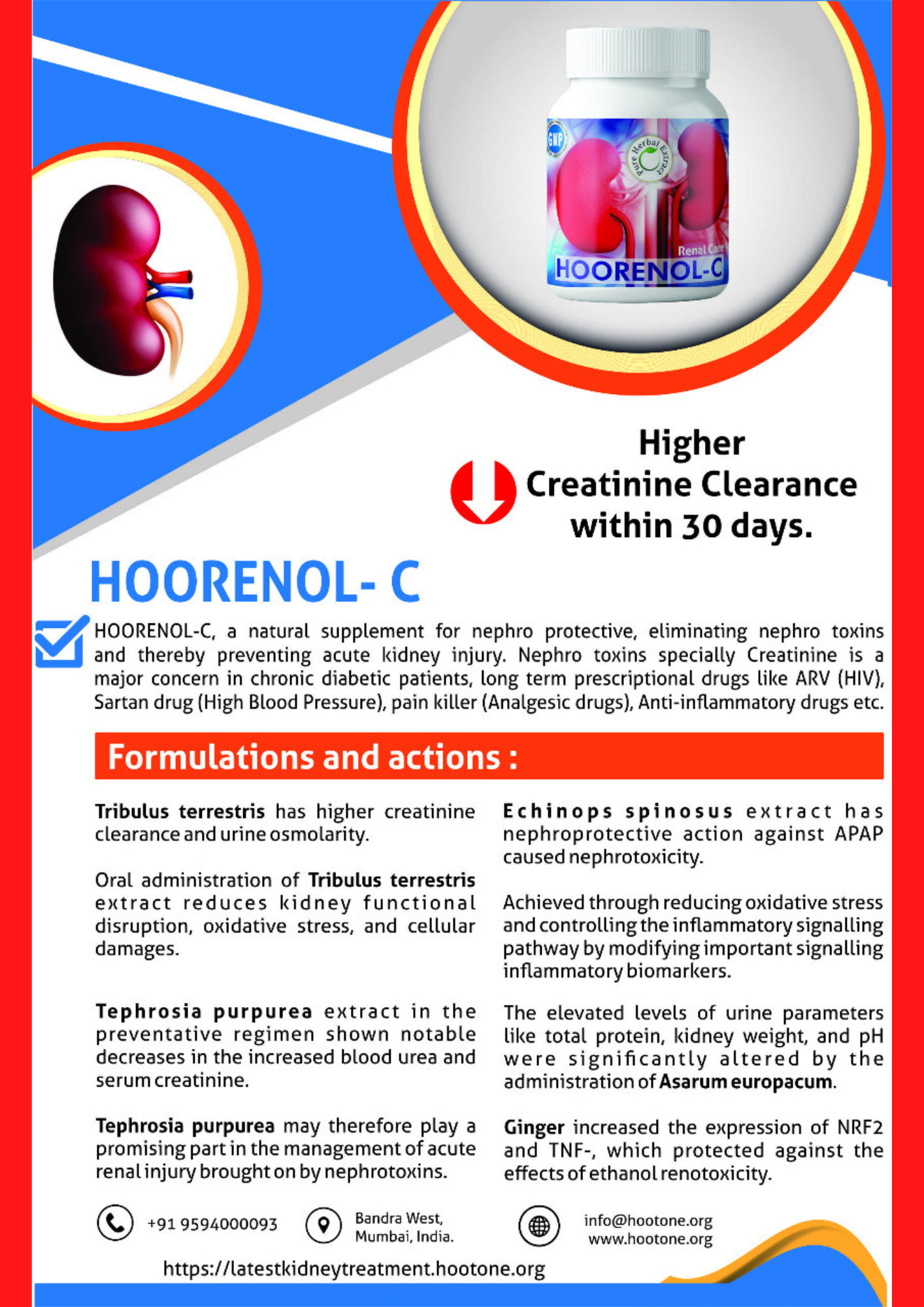 One such Help is available at Hootone, Here you can find HOORENOL C, a nephroprotective combinational herbal extracts that prevents accumulation of nephrotoxin in blood and guards from acute kidney injury.